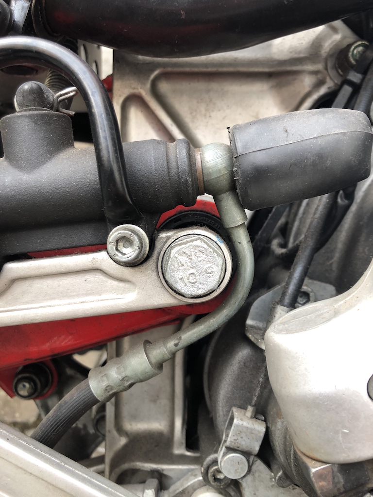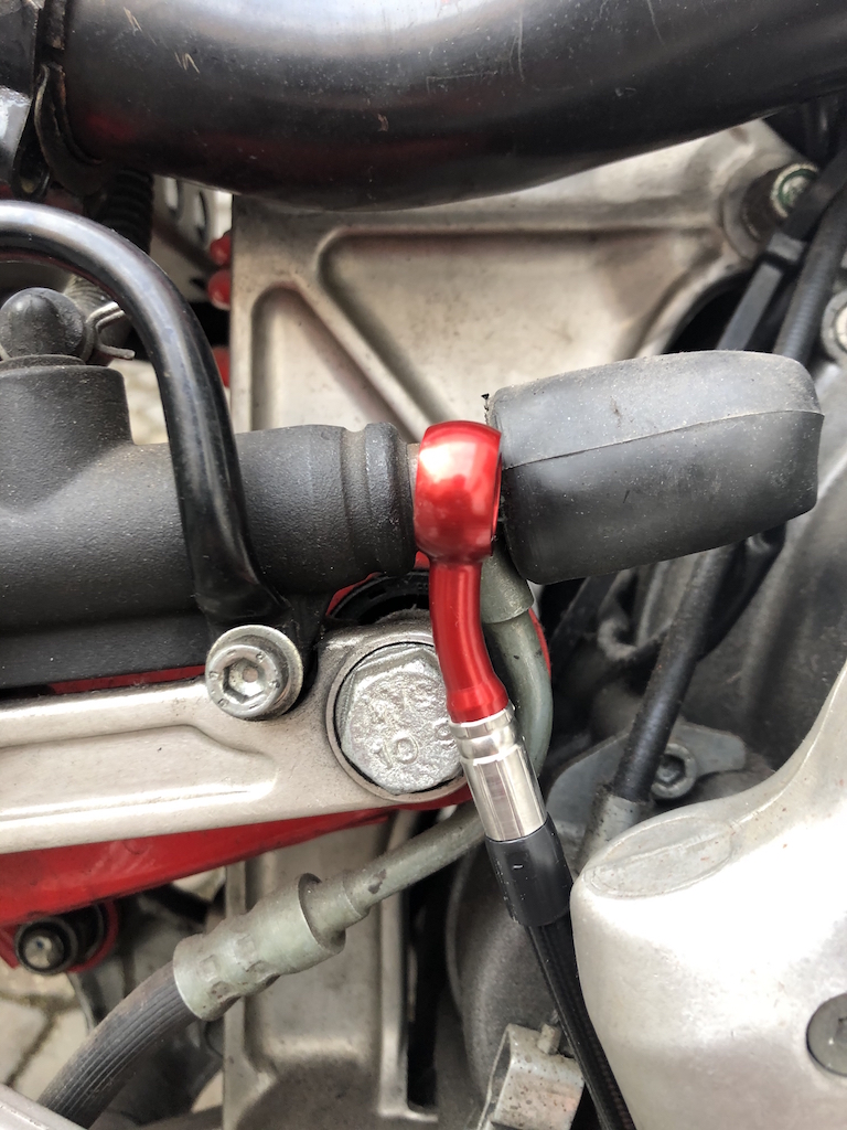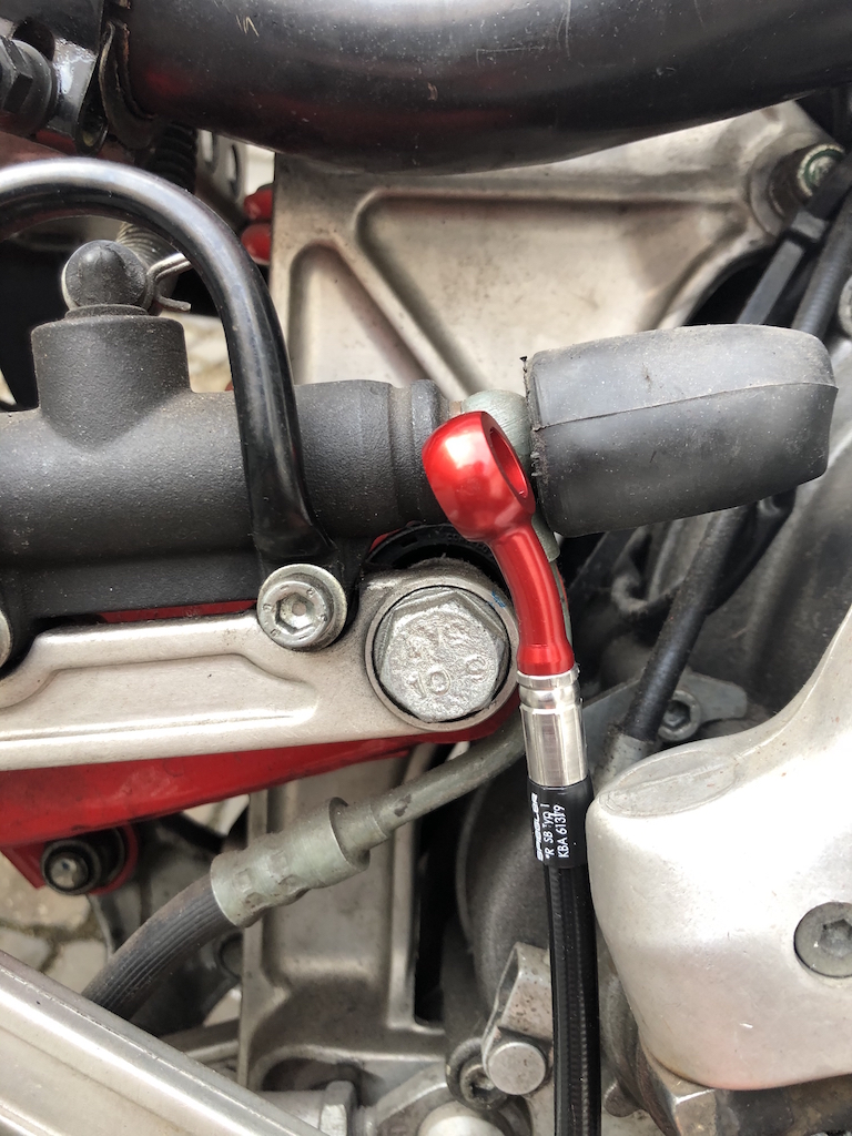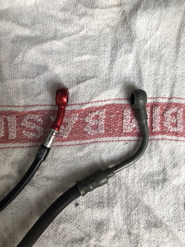 Die für das Hinterrad gedachte Spiegler-Bremsleitung lässt sich nur bedingt am Fahrzeug montieren. Der Verlauf des Fittings an der Bremspumpe entspricht nicht im geringsten dem Originalteil, eine Montage ist nur mit Verzug des Fittings möglich, was eine Gefahrenquelle darstellt. Weiterhin lässt sich die Leitung nicht dem original entsprechend verlegen, es besteht hier z.B. bei Bewegung der Schwinge die Gefahr des abknicken / brechen der Bremsleitung.