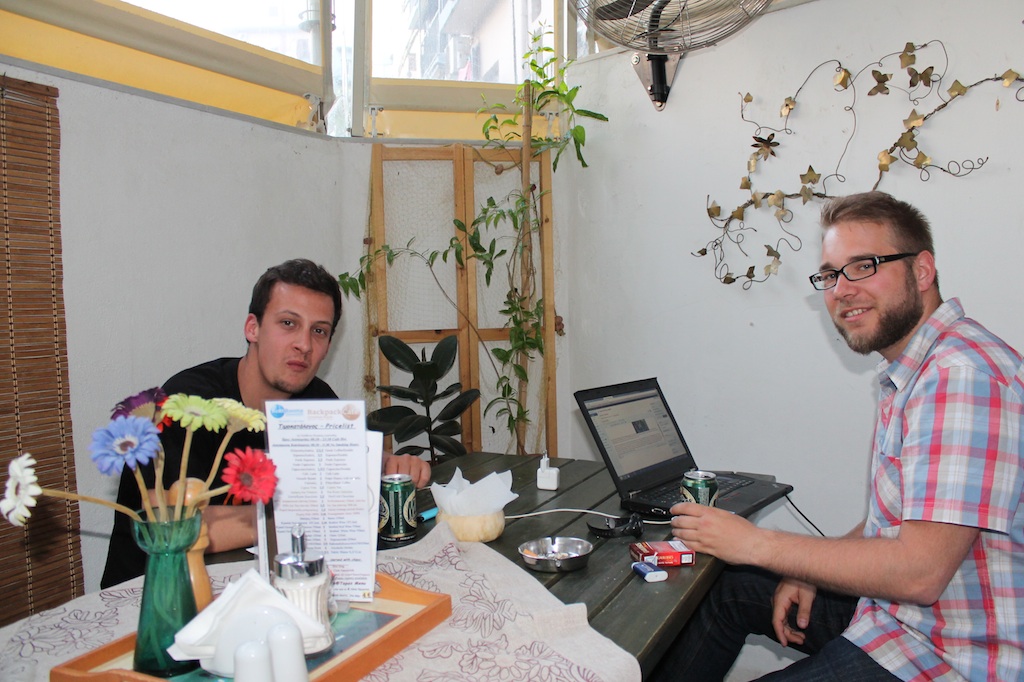 Wärend wir unser Hostel suchten hatten wir leider auch einige Verluste an Material zu verbuchen. Philipp hatte in einer Nebengasse, in der wir kurz stoppten, seinen Rucksack neben dem Motorrad am Boden abgelegt und leider auch bei der Weiterfahrt dort auf der Strasse liegen lassen. Als er den Verlust einige Minuten später bemerkten, war es leider schon zu spät und jemand anderes hatte sich dem Rucksack samt Inhalt (Reisepass, Fahrzeugdokumente, Reiseführer, Muddis selbst gestricktes Käppi… ) angenommen. Was folgte waren reichlich Telefonate mit dem Konsulat in Griechenland, der Zulassungsstelle in Lohr und und und…