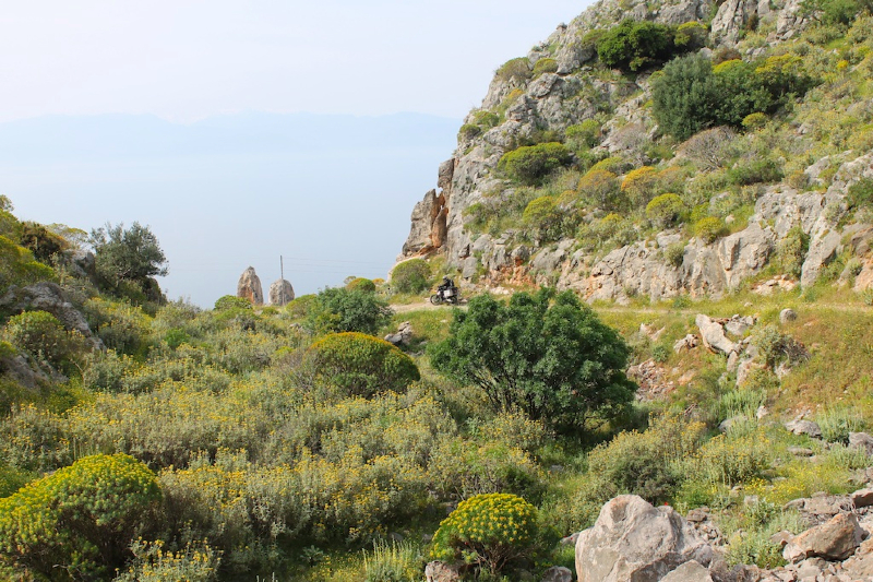 Nach einem leichten Mittagessen ging es von Delphi aus über die E65 in Richtung Grafia, über teils bis zu 750 m hohen Bergstraßen, vorbei an Lamia mit Ziel Volos. Ab und an gönnten wir uns auch einen kurzen Offroad-Ausflug, nicht als Streckenverkürzung, vielmehr „just for fun“ 😉