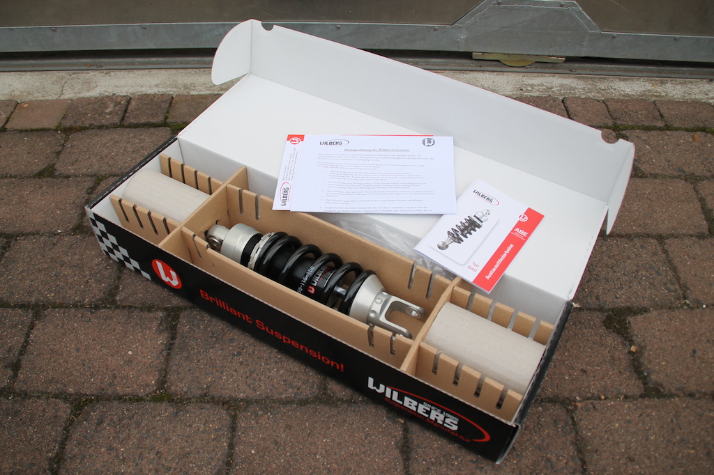 Im ersten Schritt habe ich nun erste Komponenten montiert und ein neues Federbein von Wilbers eingesetzt.
